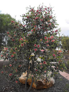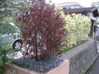葉が赤いのは常緑樹だが、冬はこの色、夏はグリーンになる。いずれも病害虫知らずの優等生。