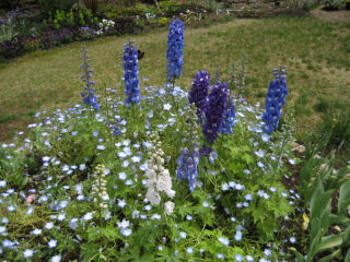 ネモフィラは昨年のこぼれ種で一面に咲いてくれた。