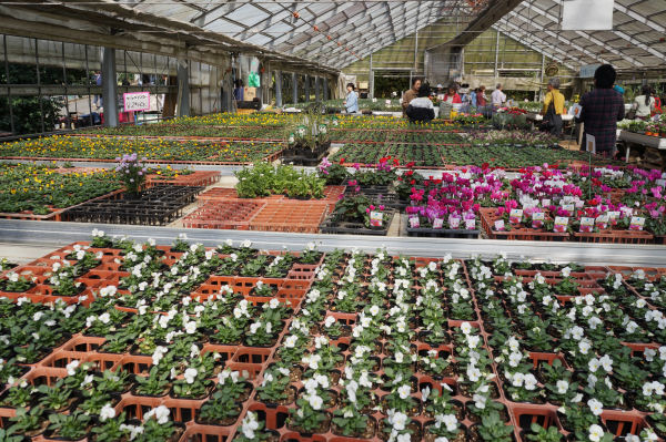 関連の画像。10月下旬、近くのナーセリーでバンジー祭りがあった。この期間だけ一般に直売している。初春に訪ねたときはこの温室はクリスマスローズでいっぱいだった。