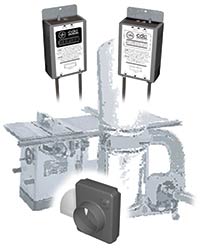 世の流れか?そんなことを感じさせる製品。ブラスト・ゲートのモジュール、検出モジュールとコントローラーのモジュールを電話のモジュラー・ケーブルで接続するだけ。シャッターはクローズ部分だけのようです。木工機の動作検出は電源ケーブルの途中に検出モジュールを挟み込むだけ。120V用と240V用が用意されています。今年は一気に自動化に突き進むか!?