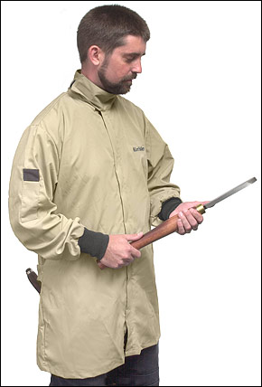 首・手首がしっかりと閉まっていてラフィングで飛び跳ねるチップを寄せ付けなさそうですし、なんと言ってもこれを着るといっぱしのウッド・ターナーになったような気がしませんか(笑)