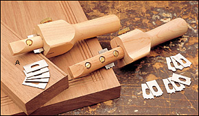 最近古ヤスリで切削刃まがいを作ったためか、やたらと気になります。飾り縁までいかなくても作品にちょっとした変化をつけることができそうです。6パターンのブレードとセットで$44.50