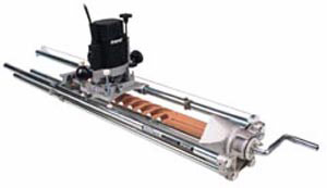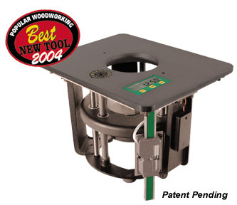 他社にもあったと思いますが、ルーター・リフトの移動量をデジタル表示するもの。昇降機構はバックラッシュがあるのでこちらの方がずっと正確ですが、0.01インチ≒0.25mm、この精度が必要かどうかは私には分かりません。これぐらいは切削中の手加減で簡単に狂ってしまうのでは・・・ 既存のルーター・リフトでもデジタル・スケールやデジタル?ノギスを取り付ければ・・・