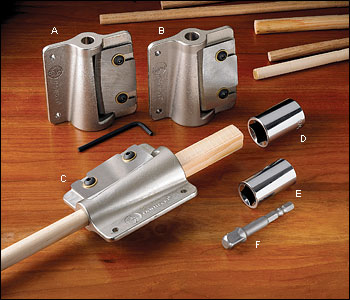VeritasはLee Valley Toolsの研究、開発、製造部門でブランド名にもなっているようですが、カッチリしたジグがお得意なようです。いきなり希望する径にしてしまうのではなく、荒削り、仕上げ削りの2段階で加工するようになっていて、径ごとに専用コレット?が用意されていますので価格はそれなり?