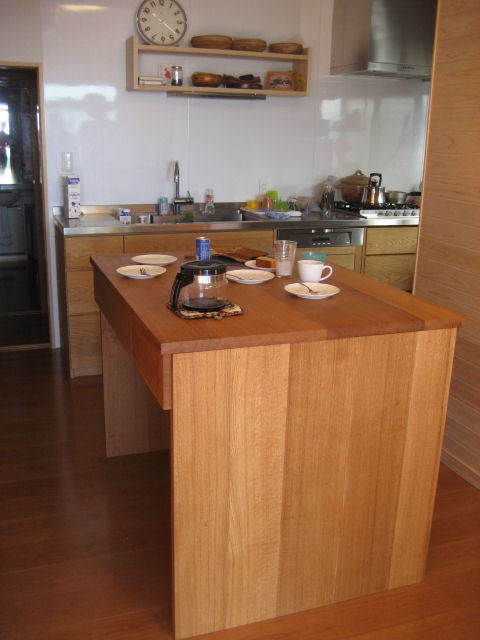 耐震工事を兼ねてリフォームするお宅から、キッチンとリビング・ダイニングの間に置くカウンター/作業テーブルの相談があった。